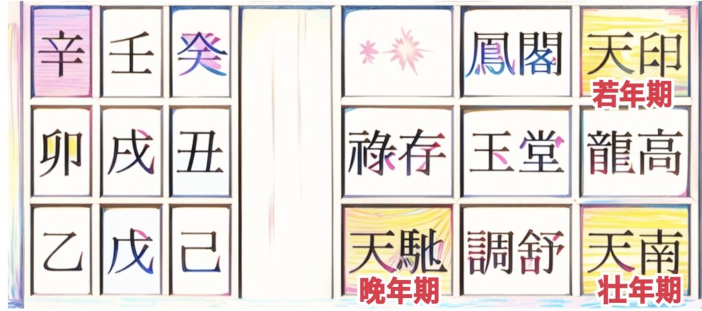 十二大従星はどの年代にあるかで動きが変わってきますので、人生を3つに分けた三分法で観ていきます