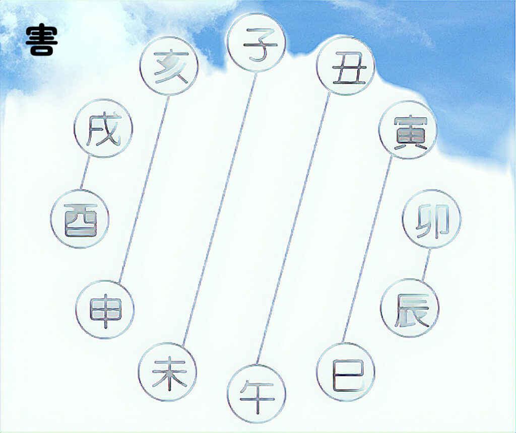 の6種類あり「六害」とも呼ばれ、これを命式にもっていれば宿命に害があることになります