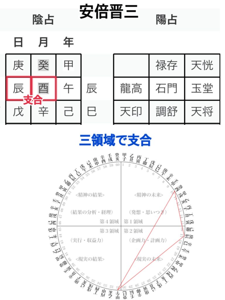 こちらももっとも長期政権を樹立した安倍晋三元総理ですが、支合でギリ3領域ですから支合のパワーを活かせる人です